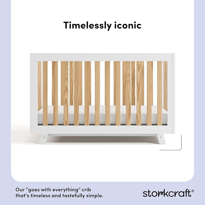 Storkcraft Beckett Grow-with-Me Convertible Crib (Natural & White) – GREENGUARD Gold Certified, Converts to Toddler Bed & Daybed, Fits Standard Crib Mattress, Easy-to-Assemble