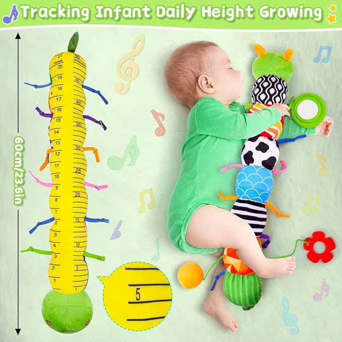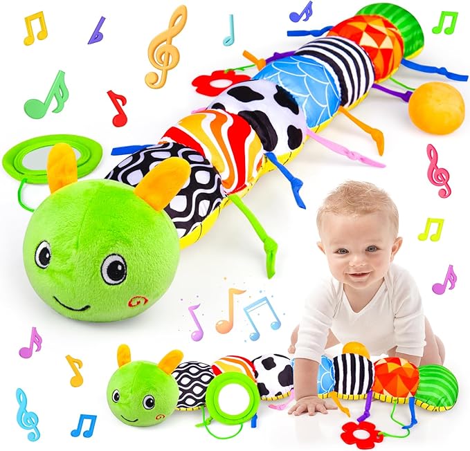- Tummy Time Toys: This caterpillar plush toy infants 0-6 months toys can interest your baby and enrich the tummy time; can exercise babyโs neck and back muscles and prevent head from being flat; can practice hand eye coordination and grabbing things as infant toys 6-12 months developmental