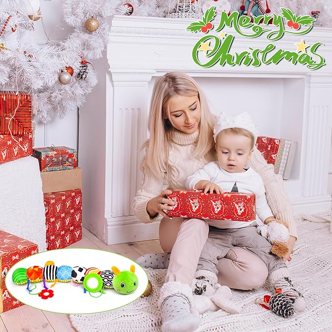 - Sensory Learning Toys -The Caterpillar back features a variety of colors, fabrics, patterns, and textures to engage the baby's interest. The 3 different sensory designs ---crinkle, rattles and ring bell. They are also in the different textures and sounds. As the baby explores these elements, their eyes and hands remain active, contributing to the development of both tactile and visual skills