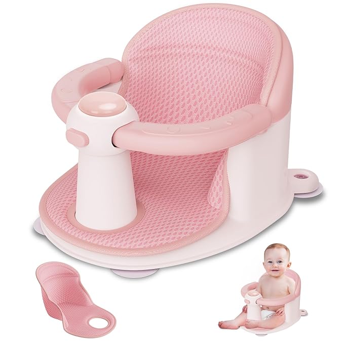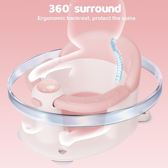 Baby Bath Seat for Babies 6 Months & up, Soft Cushions, Non-Slip Baby Bath Seat, Safe & Comfortable Baby Bath Support, for Bathtub/Living Room/Shower Room(Pink)