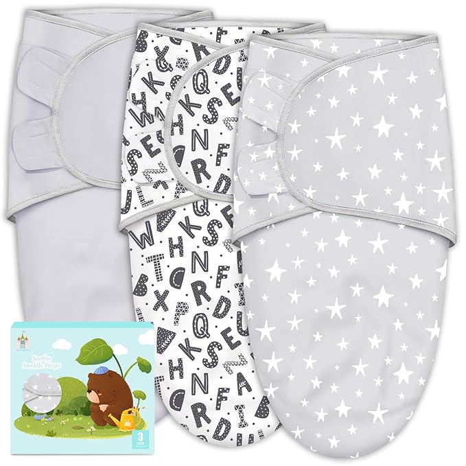 Cute Castle 3-Pack Baby Swaddle Sleep Sacks - Newborn Swaddle Sack - Ergonomic Baby Swaddles Blanket Warp for Boys and Girls - Baby Essentials (0-3 Months - Gray, Letters, Stars)