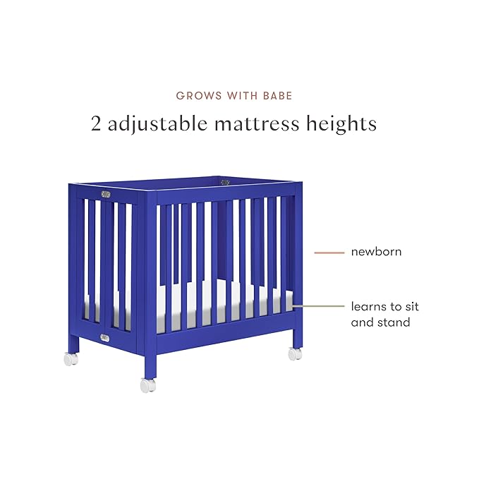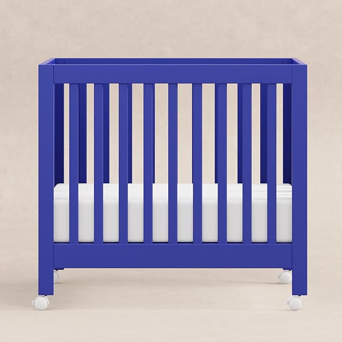 Babyletto Origami Mini Portable Crib Folding with Wheels in Cobalt, 2 Adjustable Mattress Positions, Greenguard Gold Certified