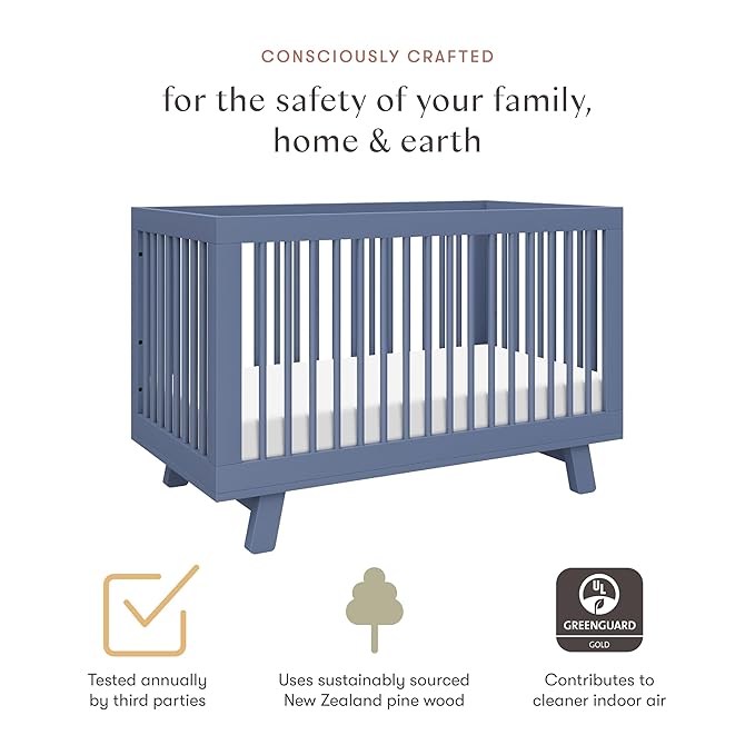 babyletto Hudson 3-in-1 Convertible Baby Crib - GREENGUARD Gold Certified Convertible Crib to Toddler Bed and Daybed - Wooden Baby Bed with 4 Adjustable Mattress Heights - Easy Assembly - Cove Blue