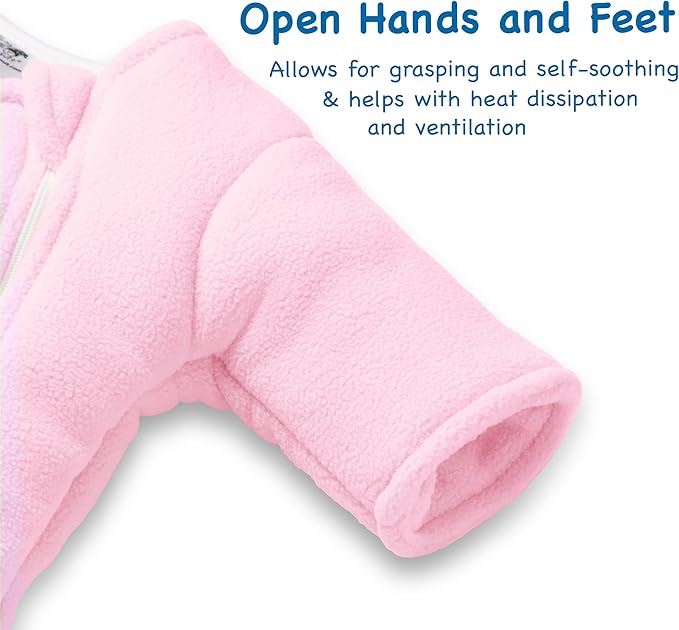 - EASY DIAPER CHANGES – Double zippers allow for quick and convenient diaper changes, while open hands and feet help support comfort and self-soothing.