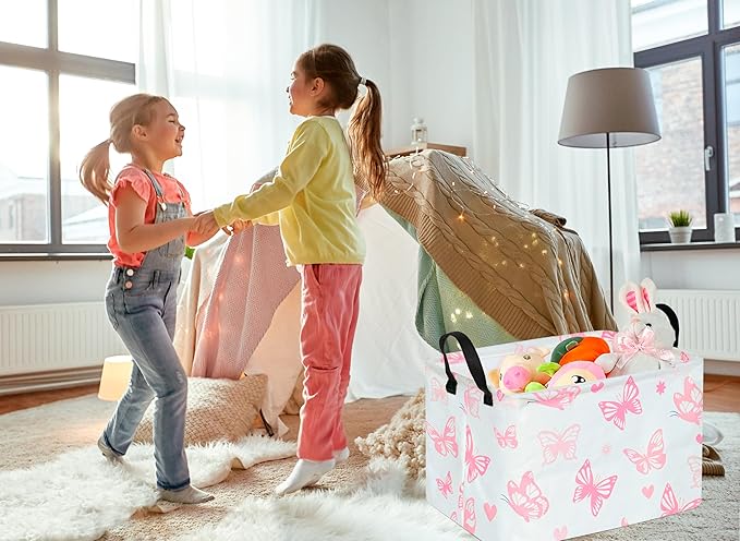 Rectangle Kids Gift Storage Basket Shelf Storage Basket Organizer Box Clothes Laundry Hamper Toys Nursery Basket Baby Laundry Basket with Handles (Pink Butterfly)