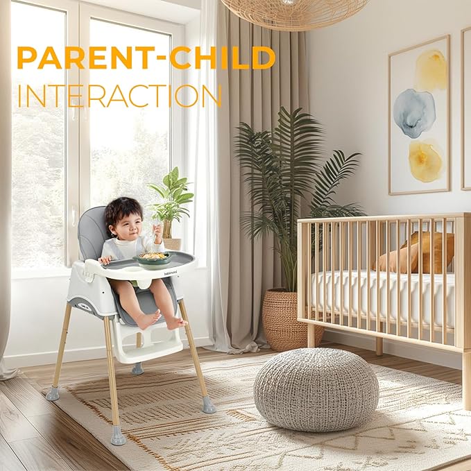 - Multiple Safety Protections: Sturdy steel tubes and a golden triangle design prevent tipping. The adjustable 5 point harness high chair ensures your babyโs safety, making this highchair a top choice for parents.