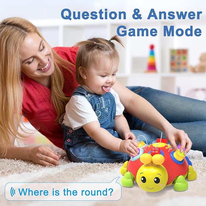 - Interactive Gaming Mode: Our Ladybug Baby Toys offers bilingual educational advantages, supporting both English and Spanish modes. The toys head features smart interactive games that guide babies to recognize numbers 123, letters ABC, and object shapes through engaging voice prompts and fun questions. Babies receive encouraging voice feedback when they answer questions correctly, boosting their learning enthusiasm and sense of accomplishment.