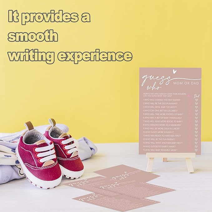 - Premium Quality: Crafted from high-quality paper materials, these baby shower party game cards are not only sturdy and durable but also easy to write on with a pen or pencil.