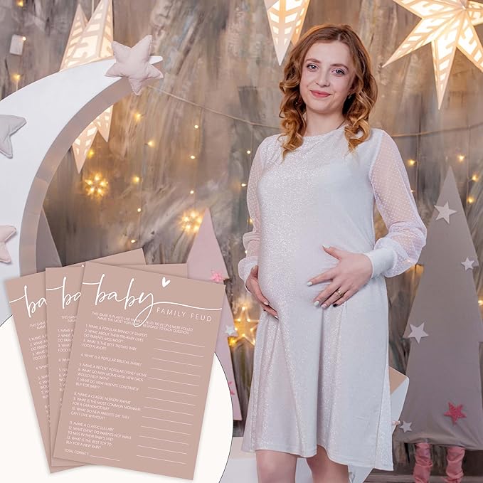 - Complete Package: Your order includes a set of 30 baby shower game cards.