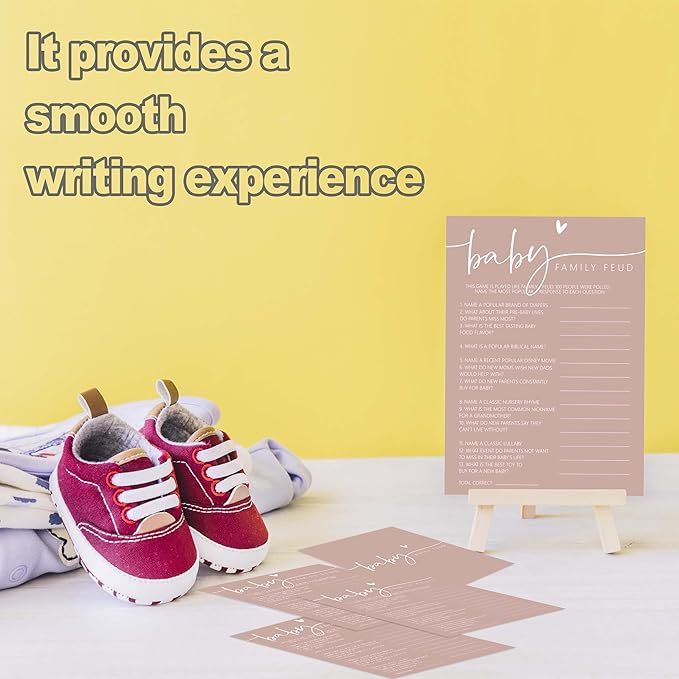 - Premium Quality: Crafted from high-quality paper materials, these baby shower party game cards are not only sturdy and durable but also easy to write on with a pen or pencil.