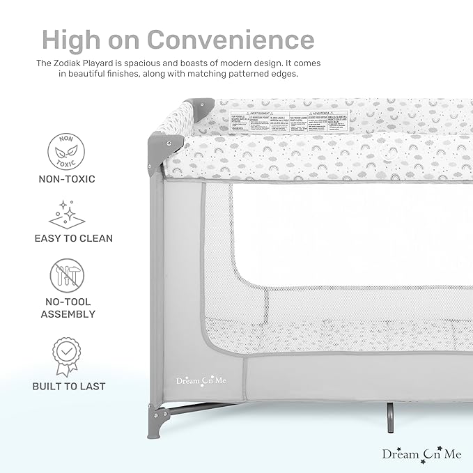 - USEFUL FEATURES: The Zodiak comes with a padded floor that is comfortable for your baby to play on as well as catch a nap! Its arced corners offer greater safety for your little one. It also has a convenient tote handle.