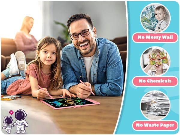 - EYE PROTECTION LCD WRITING TABLET: Adopts 2022 LCD pressure-sensitive technology and 16-inch LCD colorful screen. This toddler doodle board toys without radiation, no glare, safe and comfortable even use for a long time. ENVIRONMENTAL: The battery of the writing and drawing tablet has 3-6 months battery life, can be replaced for cycle use, without charging or plugging in power. The drawing pad toys can provide about 100,000 writings, avoid waste of paper and pencils