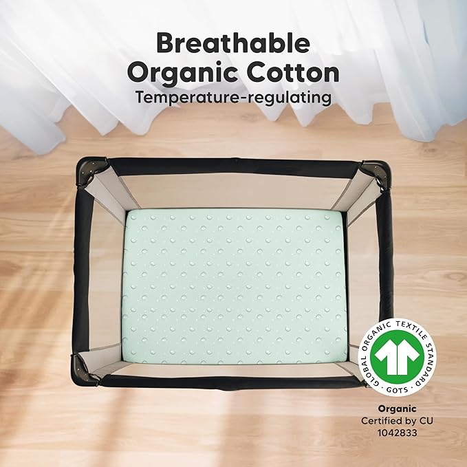 - Soft & Breathable - Made of GOTS organic cotton, the Soothe Mini Crib Sheets Fitted ensure maximum comfort for your baby during sleep time. Our breathable fitted pack n play sheet is suitable for all skin types, including the most delicate skin.