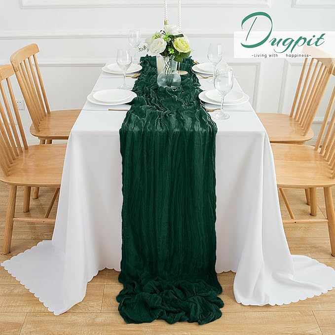 12Pack Emerald Green Table Runner 35 x 120 inch Cheesecloth Table Runner 10FT Boho Table Runners Rustic Gauze Cheese Cloth Table Runners for Party Wedding Birthday Dining Bridal Baby Shower Decor
