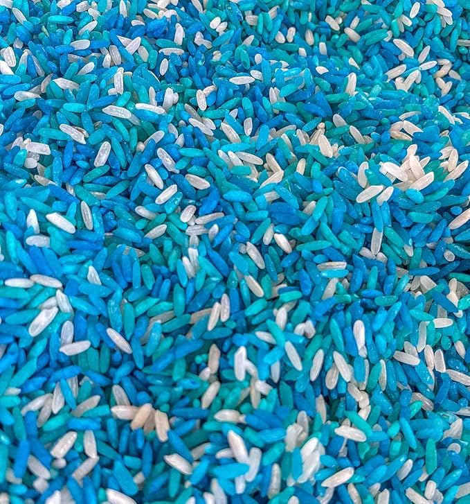 - Each set comes with 4 cups of brightly colored hand-dyed rice in a zipper-sealed bag that will not come off on children's hands. All of the goodies found inside this bin can be simply stored in our high-quality drawstring bag. SENSORY BIN IS NOT INCLUDED IN THIS SET!!!