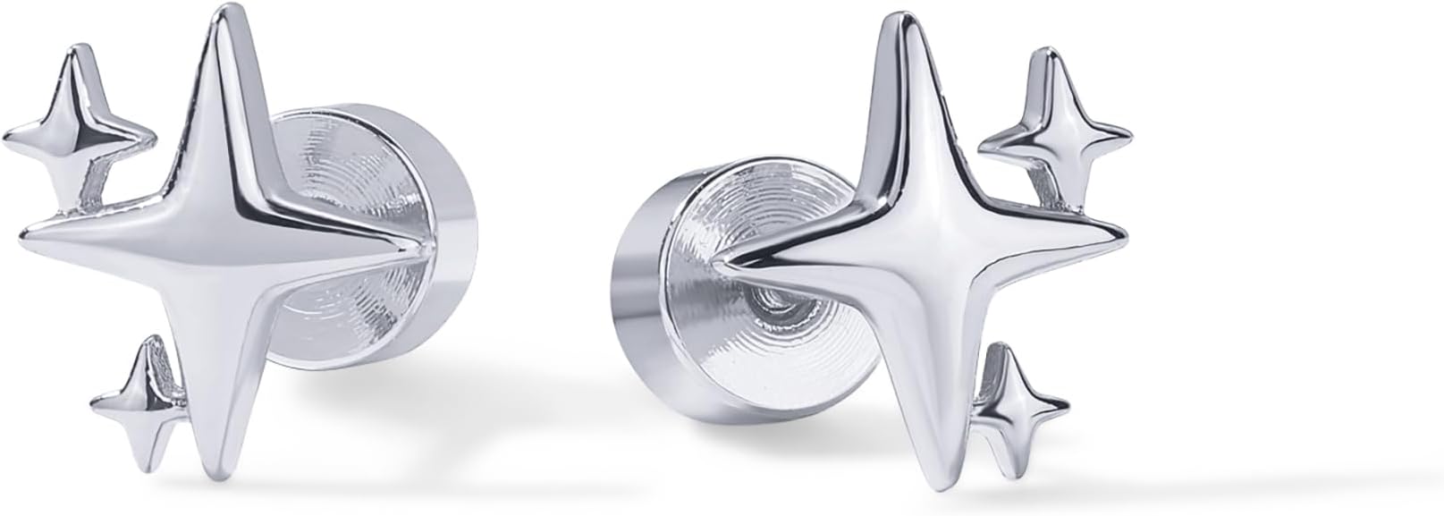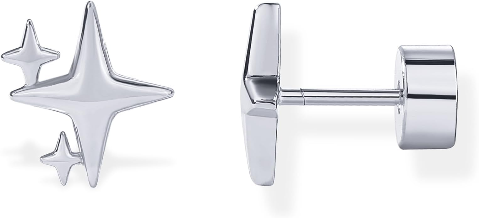 - HIGHLIGHTS: Bring a little sparkle everywhere you go with these small star-shaped flatback stud earrings. Each rhodium-plated stud measures 9.0mm x 8.0mm and features a secure screw back design on a 925 sterling silver post.