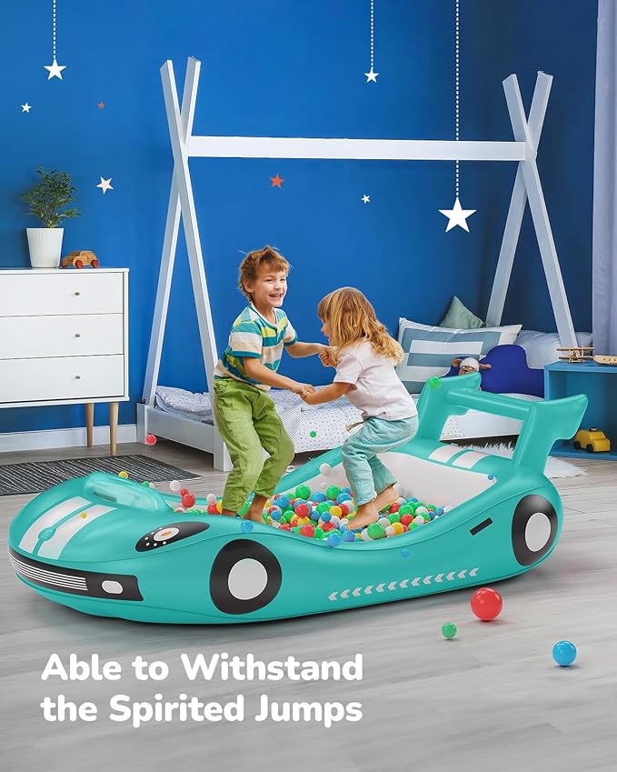 - Exciting Racing Car Design: Unlike regular kids travel beds, this air mattress with sides gives kids a chic bed experience with its racing car shape, adding a unique decorative element to the room. The cool racing car appearance, complete with vibrant printing details, as if you are in a real racing car is a surprise gift for little car fans.