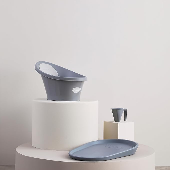 Newborn Baby Bath | Built in Support Bump and Soft Backrest | Suitable from Newborn | Bath Seat Support Includes Plug | Pebble Grey