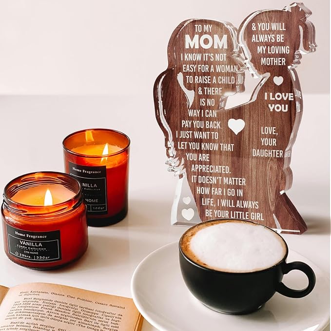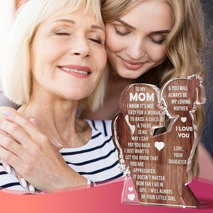 - π Heartwarming Design: Crafted with an acrylic base and a printed wooden texture, this heartfelt plaque is the perfect gifts for mom. Its touching message will resonate with every mother, making it an ideal mom birthday gift from daughter. π