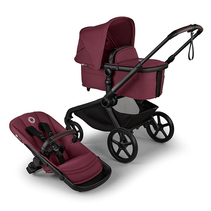 Bugaboo Kangaroo All-Terrain Single-to-Double Tandem Stroller for Infant and Toddler, for Up to Three Kids, XL Wheels, One-Hand Operation, Large Bassinet, XL Underseat Storage (Dark Cherry)