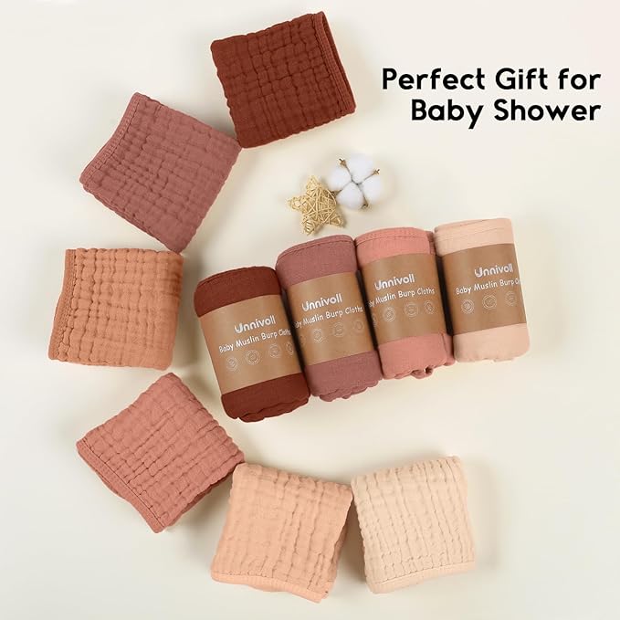 - Verstile Baby Essentials: Designed with a gender-neutral color, our muslin burp cloths will be a thoughtful present for any occasion like baby shower, baby registry, birthday, Christmas, or you can use it as burp rags, baby bibs, baby washcloths and towels, baby wipes, anything else that's available. A must-have for teething baby and mess no more.