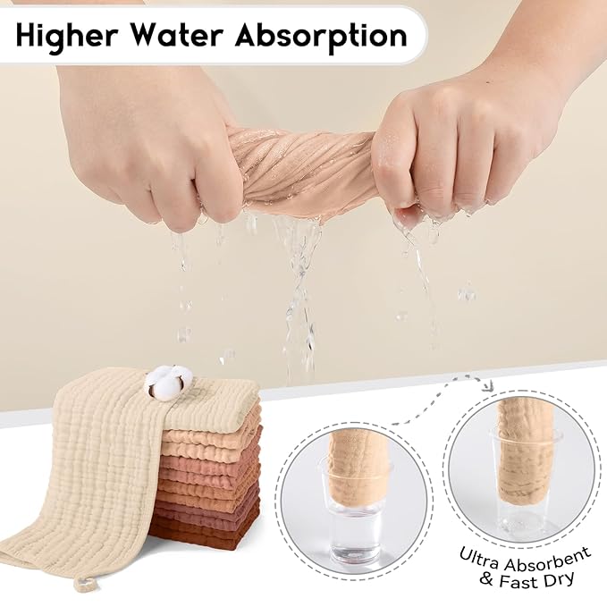 - Excellent Absorbent: Featuring 6 layers of absorbent muslin and fluffy structure design, our burping cloths for babies provide maximum absorption with tendor touch, works well to protect your teething baby from all dribble and spit ups soaking their clothes. Large 20''X10'' size provides maximum coverage and extra layering adds durability, making them ideal for use in any season.