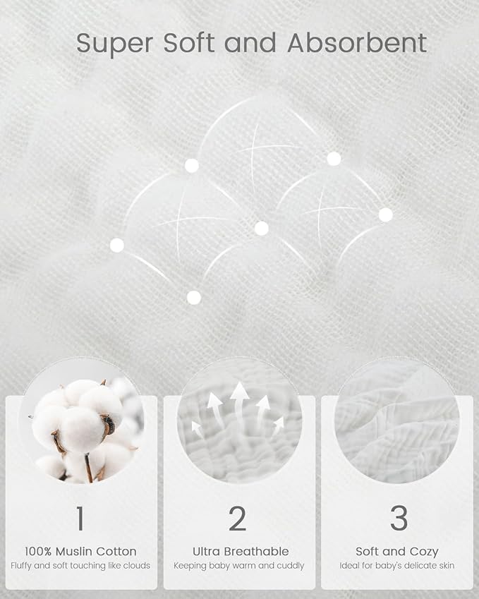 - Fabulously Absorbent: The 6 layers thickness muslin honeycomb embossing design keeps the baby dry and warm after showering. And the speed of water absorption is faster than traditional baby bath towels, they also dry very fast when hanging