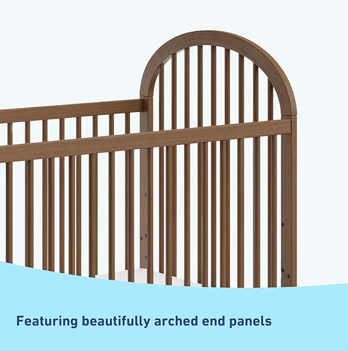 - 3-IN-1 CONVERTIBLE CRIB: Converts from baby crib (mattress sold separately) to toddler bed (compatible toddler guardrail kit sold separately), and daybed; Easy-to-match design with clean lines, rounded details and stylish arches; Montessori style