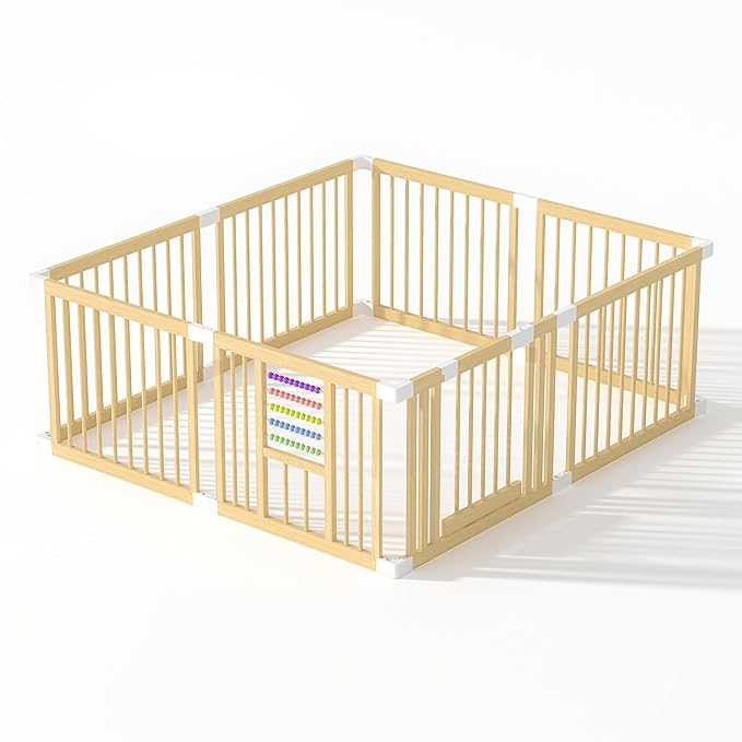 - NATURAL AND SAFE MATERIAL: Crafted from natural New Zealand pine, our baby playpen has been certified by CPC and CPSC. No paint or varnish, non-toxic, odorless, smooth to the touch, ensuring the safety of babies. This baby fence combines aesthetic appeal with functionality, creating a secure choice for your home