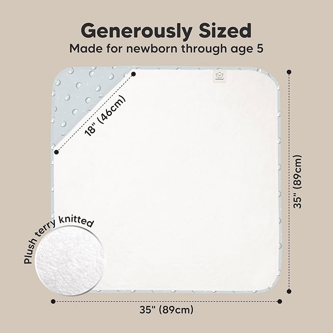 - Large and Durable Hooded Baby Bath Towels β Measuring 35" x 35", KeaBabies Hooded Baby Towels for newborn are built to be long-lasting even with repeated washes. The soft baby hooded towel can be use as your newborn grows into a toddler and up to age 5.