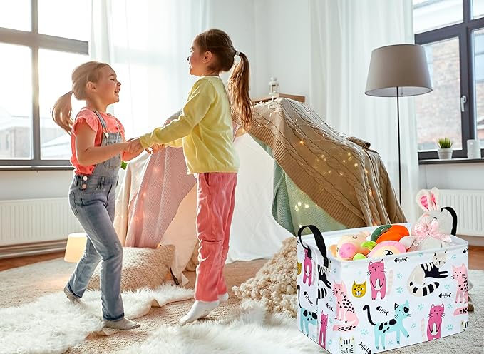 Cute Cat Pattern Gift Laundry Basket for Girls and Boys, Baby Storage Bin for Dirty Cloth, Toys, Kids Clothes Gift Storage Box with Handles