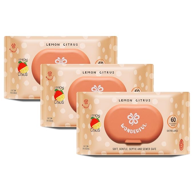 - πLEMON CITRUS & PREMIUM QUALITY: Wonderful Flushable Wipes are great alternative or supplement to toilet paper. Our butt flushable wipes are made with superb quality of plant-based fibers, providing a refreshing, clean feel and your butt can stay cool. Designed for adults, kids, feminine, babies, dudes use, pets safe.