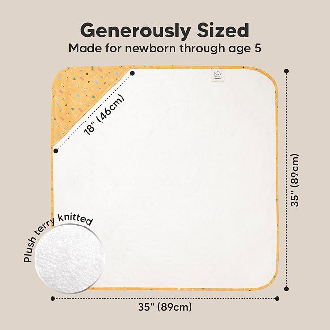 - Large and Durable Hooded Baby Bath Towels β Measuring 35" x 35", KeaBabies Hooded Baby Towels for newborn are built to be long-lasting even with repeated washes. The soft baby hooded towel can be use as your newborn grows into a toddler and up to age 5.