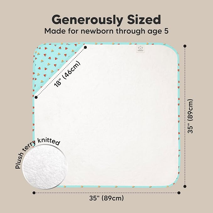 - Large and Durable Hooded Baby Bath Towels β Measuring 35" x 35", KeaBabies Hooded Baby Towels for newborn are built to be long-lasting even with repeated washes. The soft baby hooded towel can be use as your newborn grows into a toddler and up to age 5.
