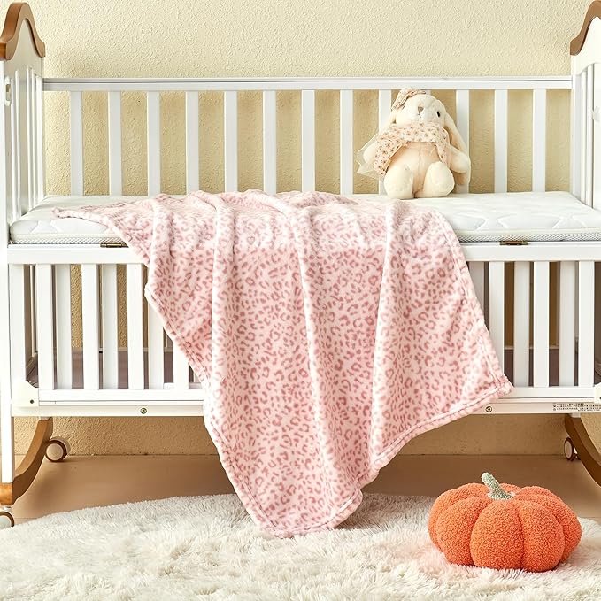 Yurhap Leopard Print Baby Blanket Fleece Baby Blankets for Girls, Ultra Soft Cozy Fluffy Infant Toddler Newborn Receiving Blankets for Crib Stroller, 30"x40", Light Pink