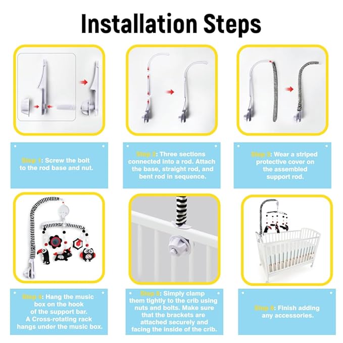 - ★ CUSTOMER SATISFACTION IS TOP PRIORITY - Our neutral crib mobile is designed to fit standard-size cribs and sets up in minutes. The detachable arm makes our mobiles very easy to move or store,Whether you’re looking for a crib mobile for girls or boys, This baby mobile can meet the baby's personality and kindergarten theme decor.