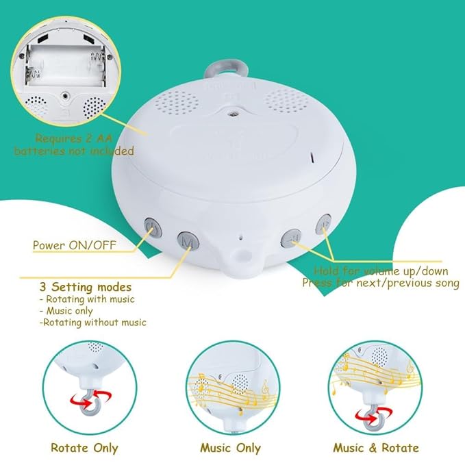 - ♫ MADE FOR BABY'S VIEW - UPGRADED MUSIC BOX, Easy to install, no screw needed,Requires 2 AA (not included). The baby mobile is made of safe ABS material, and the cute soft crib toys are handmade from high-quality stretch cotton, offer your baby harmless using experience. (Before Purchasing, please make sure the edge of your crib suitable for the baby bed holder). Crib mobiles keep your baby entertained, so you can have a little break or complete chores as your baby plays.