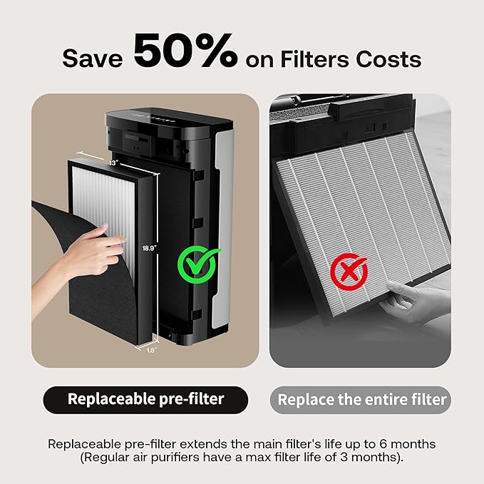 - 7-Stage Advanced Air Purification System: The 7-layer filtration system rapidly cleans indoor air within minutes, effectively filtering out pet dander, airborne fur, stubborn odors, dust, smoke particles, and common allergies. It's perfect for families with pets and "sensitive to air quality" group.