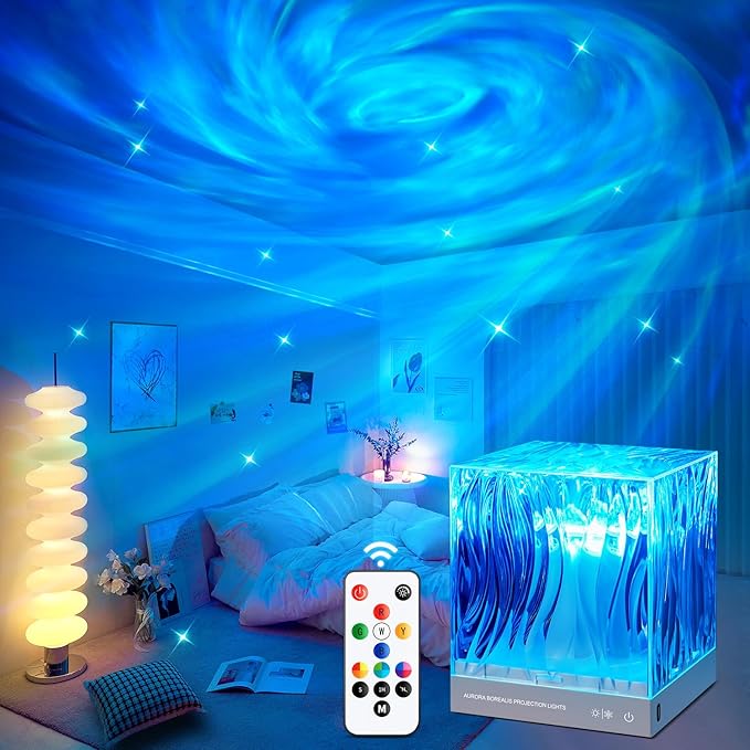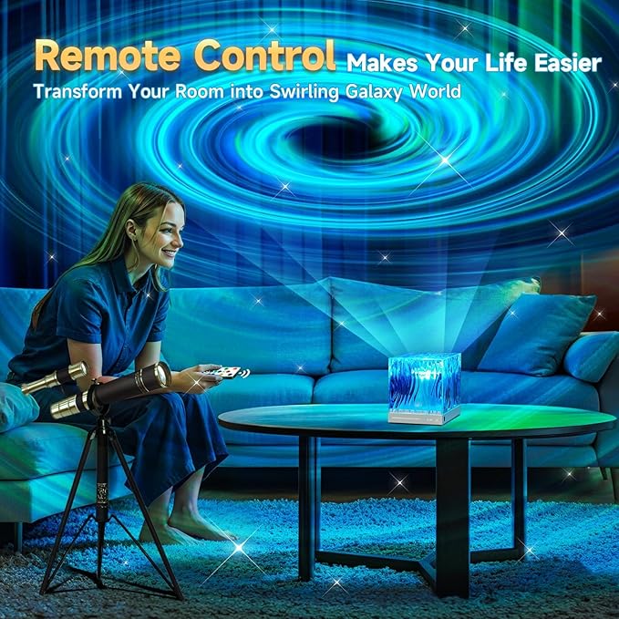 - 【AMBIENT LIGHTING MOOD LIGHTING】Galaxy projector for bedroom,ceiling projector lights for bedroom creates awesome atmosphere,when u come home after a busy day,turn on galaxy light projector,the whole room will feel relaxed & comfortable.Galaxy projector for bedroom,ceiling projector lights for bedroom adopt a unique cube design,its 5 light-emitting surfaces can illuminate ur bedroom 360°.Starlight projector,starry night projector lights for bedroom has a total of 18 colors,creating gorgeous atmosphere,enjoying the beauty of different colors,bringing u an unexpected visual experience.Galaxy projector for bedroom,ceiling projector lights for bedroom is awesome ambient lighting mood lighting