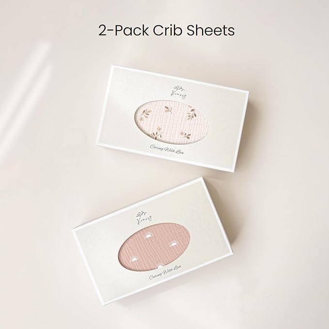 - Cute Design: Our muslin crib sheet adorned have 2 PCS different color prints will make your baby look more adorable, suitable for both boys and girls! Lay your baby down to sleep in a soft and breathable crib sheet