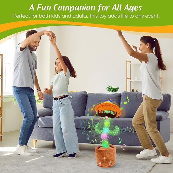 - DANCING CACTUS IMITATION TOY: Dancing Cactus Toy: This fun and interactive cactus toy dances to lively music, bringing joy and entertainment to children of all ages. With LED colorful flashes and playful movements, it is a delightful addition to any playtime