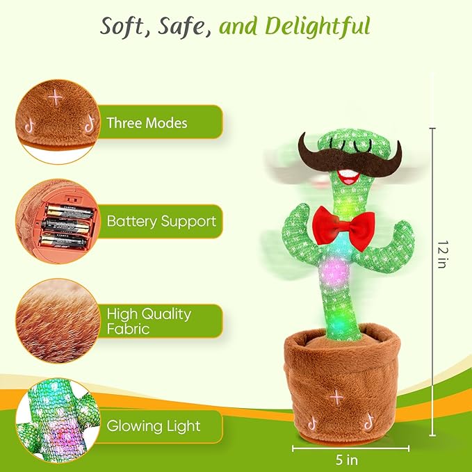 - DANCING CACTUS IMITATION TOY: Dancing Cactus Toy: This fun and interactive cactus toy dances to lively music, bringing joy and entertainment to children of all ages. With LED colorful flashes and playful movements, it is a delightful addition to any playtime