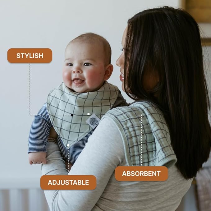 - SUPER SOFT, ABSORBENT & MESS-READY – Made with 100% cotton on the front and soft, absorbent polyester backing, these bibs catch drool, spit-up, and food messes, keeping baby dry, comfortable, and stylish all day long.