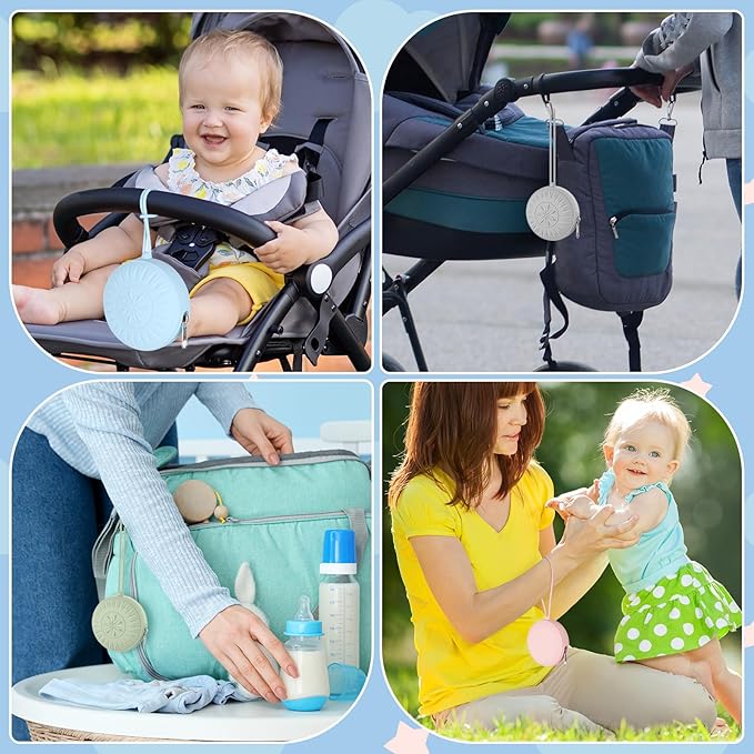 - 【Easy to Take With】: With the strap loop design, our silicone pacifier case pouch can easily be attached to a stroller or diaper bag, which is portable and free your hands, making it perfect for both personal use and travel. It is a must-have accessory for parents of babies and young children.