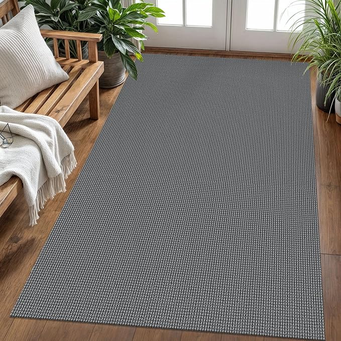 KOZYFLY Boho Rugs for Entryway Rugs 4x6 ft Washable Area Rugs Rubber Backed Living Room Rugs Braided Woven Cotton blend Indoor Outdoor Floor Carpet for Dining Room Living Room Bedroom, Dark Grey
