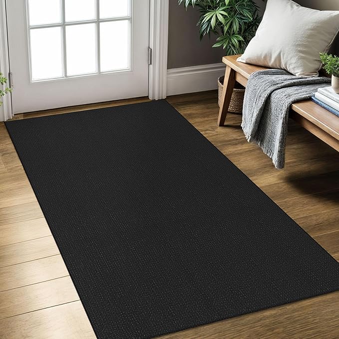 KOZYFLY Rugs for Entryway 3x5 ft Washable Area Rug Non Slip Rubber Backed Entry Rug Woven Indoor Door Mat Cotton Kitchen Rugs Floor Carpet for Entryway, Foyer, Backdoor, Black/Dark Grey