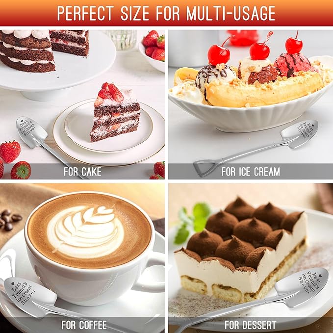 - Best Friend's Ice Cream Spoon - It's a lovely but practical gift for ice cream lovers; engraved "Best Friend's Ice Cream Shovel" will make a hit for your bestie's birthday, mothers day, christmas stocking stuffers, etc
