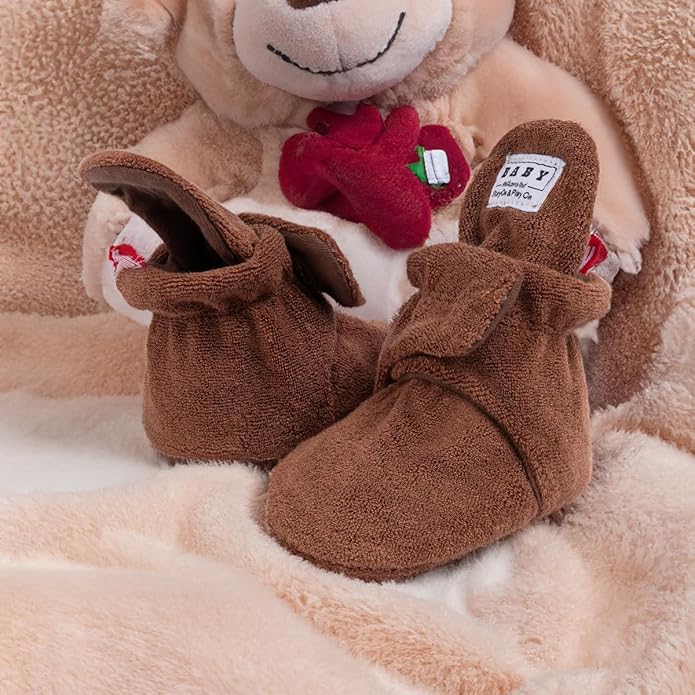 - Got a Little Kicker: Anti-slip bottoms makes learning to walk safer and easier. These stay on crib booties are wrapped, cozy & comfortable on baby's skin; When you're tying to layer up, hook & loop closed is really adorable; Elastic ankle support makes putting them on and taking them off, still keep feet covered, warm all day and night