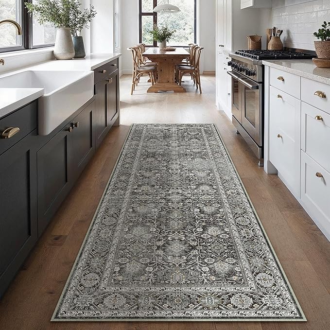 Black Runner Rug 2x7 Vintage Area Carpet Hallway Long Indoor Kitchen Washable Living Room Low Pile Traditional Distressed Retro Accent Throw Rug Non Slip Laundry Bathroom Office Dining Room