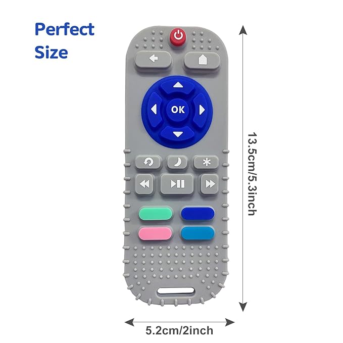 - 【Safe High-Quality Material】Baby Remote Control Toy is made of Food Grade Silicone, Non-toxic, BPA-free, Durable for biting and chewing. This Baby Chew Toys 3-6 months is Soft, Smooth surface, No burrs. The soft and bendable silicone material can avoid damaging your baby's gums.